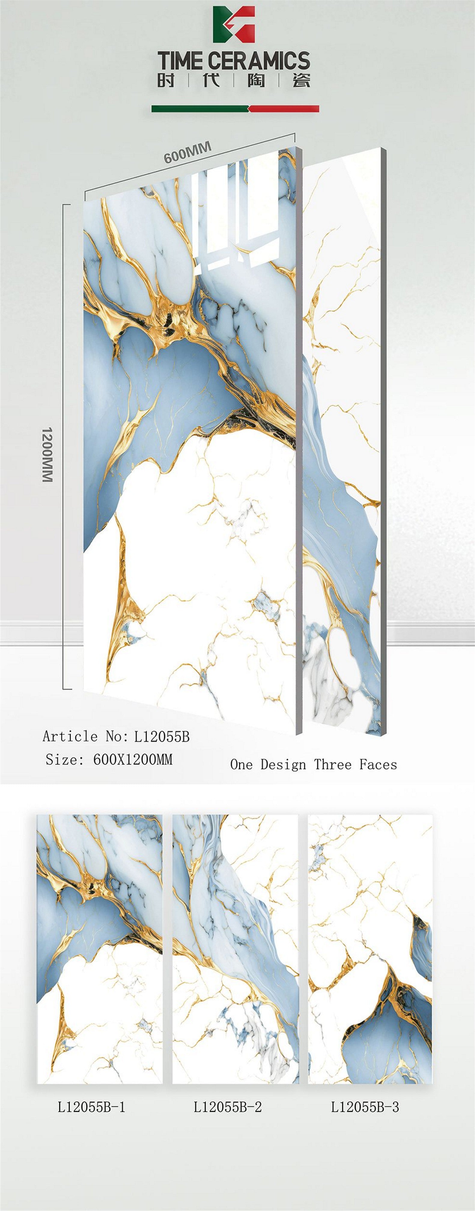 24X48 TIME TILE TIMES FLOOR TS FLOOR L-12055-B WHITE BLUE/BROWN TEXTURE POLISH