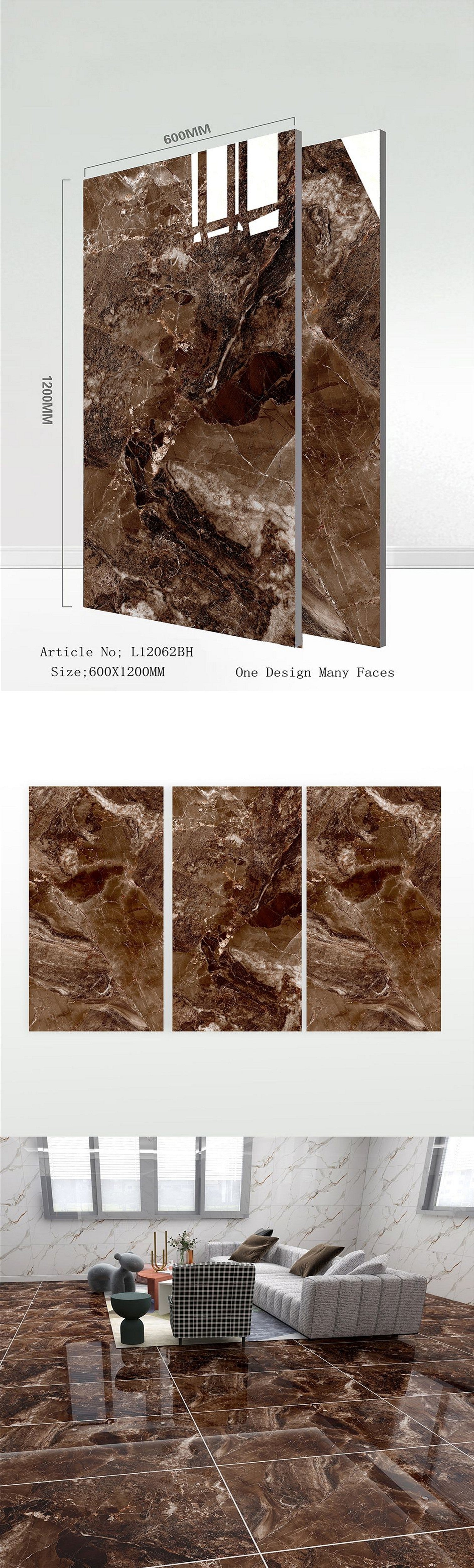 24X48 TIME TILE TIMES FLOOR TS FLOOR L-12062-BH BROWN TEXTURE POLISH
