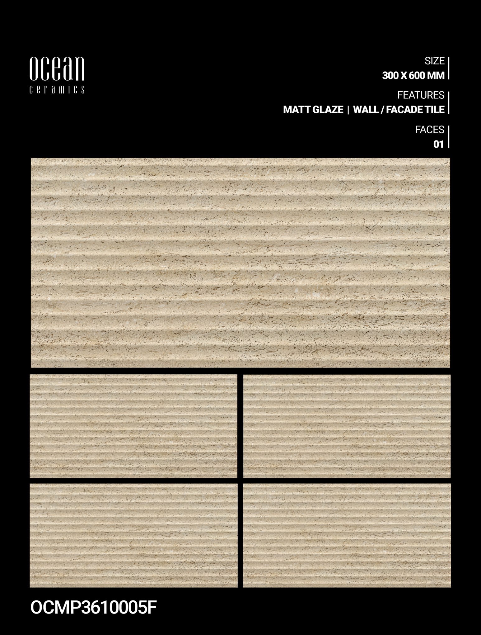 12X24 OCEAN TILE OCEAN WALL TS WALL FACING OCMP-3610005-F IVORY/BEIGE TEXTURE LINE MATT