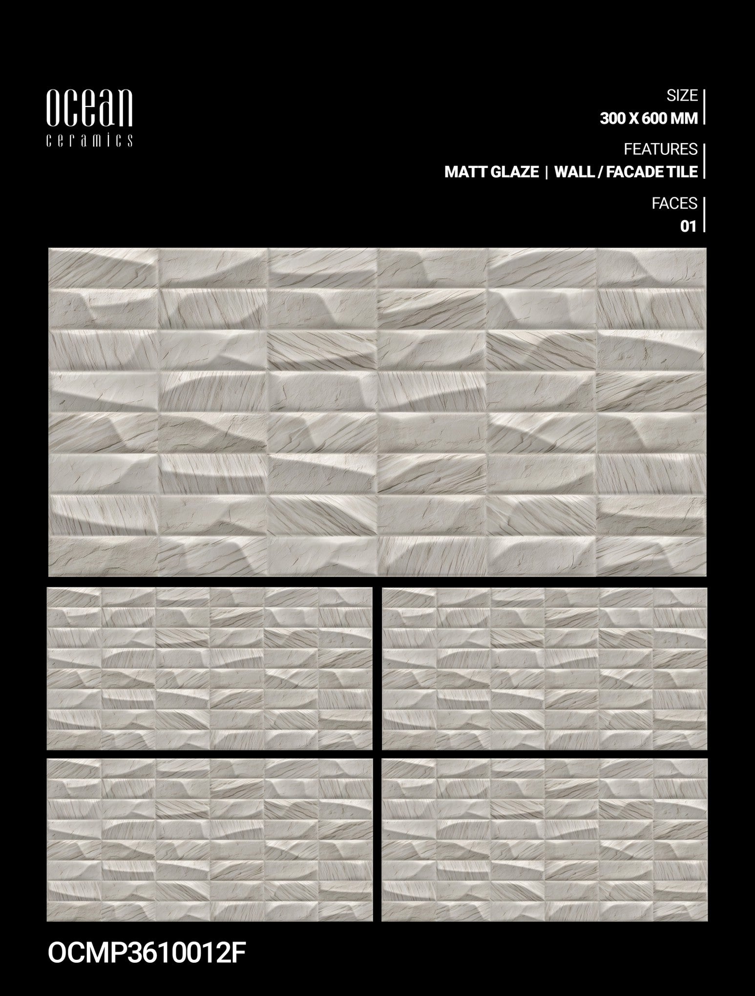 12X24 OCEAN TILE OCEAN TS WALL FACING OCMP-3610012-F IVORY DABI MATT